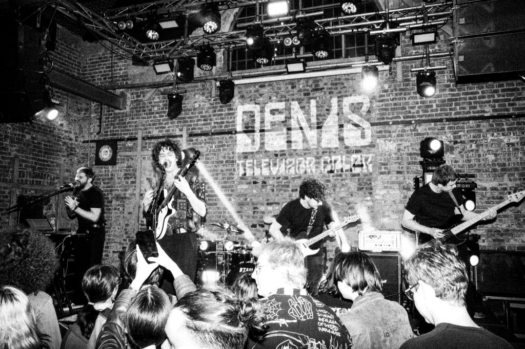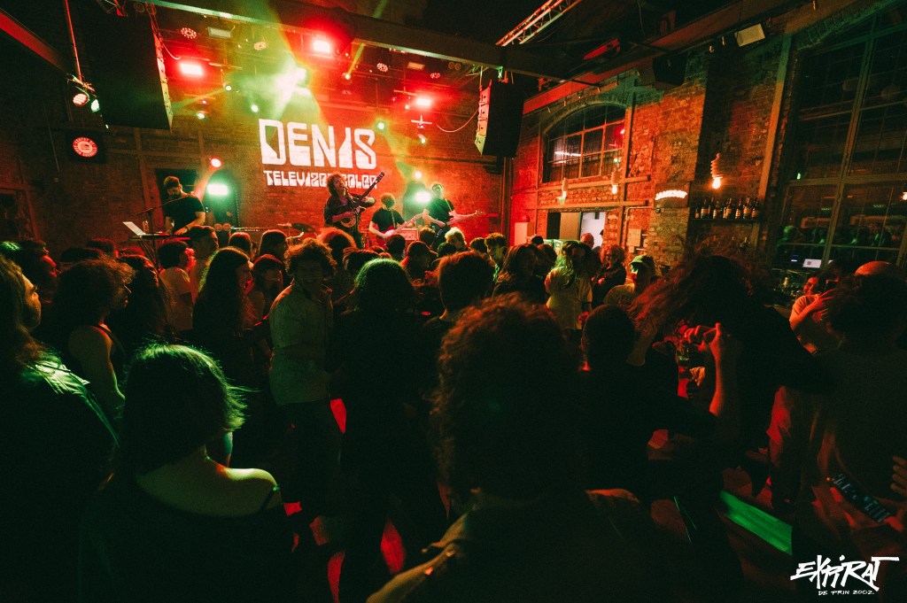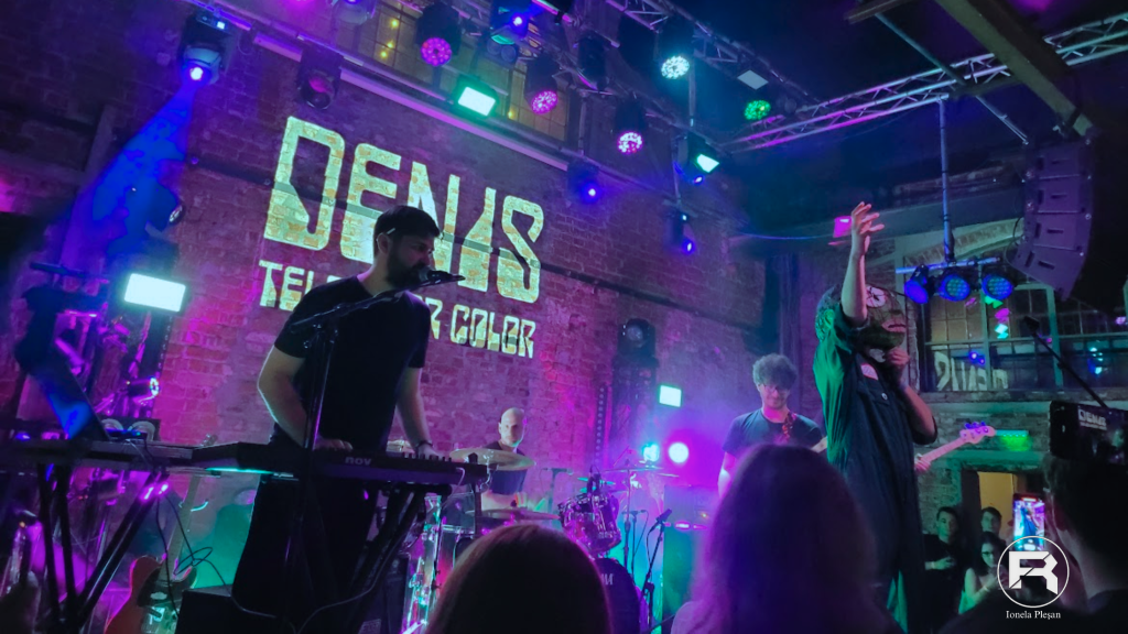D.E.N.I.S. is a garage rock band if you ask me, but everyone knows nobody likes to be labeled, so they can play whatever they want. The band was formed by a guy from Constanța, Daniel Boiangiu, who is the lead vocalist and guitarist, Alex Suciu on drums, Gabriel Gîrghescu on vocals, keyboards, and percussion, Marko Krkljus on guitar, and Marat Ibraghimov on bass. What I find most interesting about this band is that they talk about this big and dark Bucharest exactly as I see it in my head. It seems like they bring you down to earth, but somehow they also make fun of the situation in pure Romanian style. Only Romanians like to laugh at misfortune, right? The concert I attended at Expirat was the vinyl release of their latest EP titled Televizor Color. Everyone was very hyped, and it was clear they were eager to dance and I was there to observe what these people on stage do to make the audience want to see and listen to them so much.