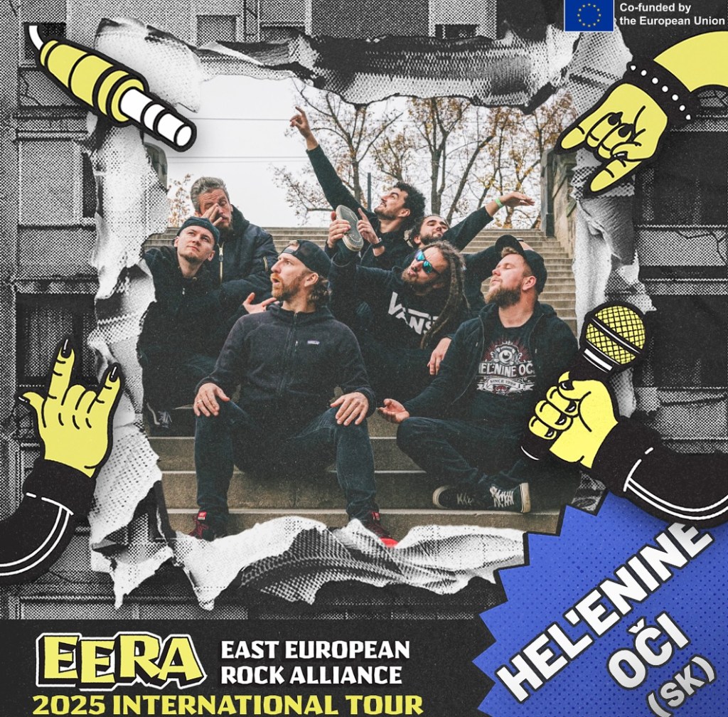 Today, we’re talking to Heľenine Oči, one of the bands in the East European Rock Alliance (EERA) project. This dynamic group from Slovakia is known for their high-energy fusion of rock, ska, reggae, folk, and metal, drawing festival crowds of all ages and musical backgrounds. With around 100 shows a year, they’ve taken their music beyond Slovakia and the Czech Republic, performing at festivals and venues across Poland, the Netherlands, the U.S., England, and Ireland.