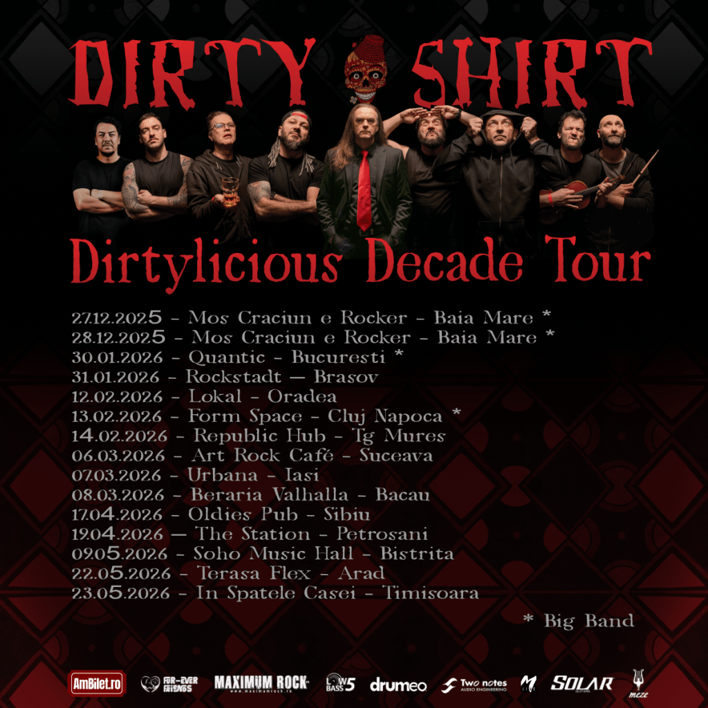 The tour kicks off this year with a special performance at “Moș Crăciun e Rocker” and continues in the first part of next year, totaling 20 concerts in cities across the country. This is a unique event, offered exclusively to fans in Romania, who will have the chance to relive live the energy of the album that defined the essence of the Dirty Shirt sound.